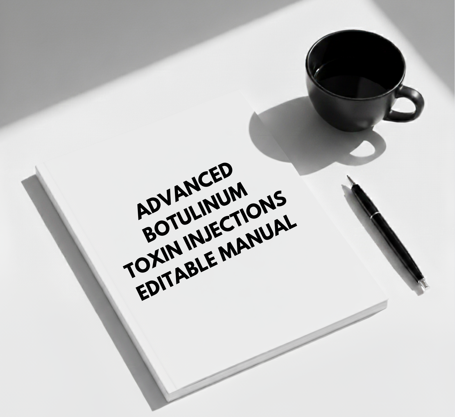 Our Advanced Botulinum Toxin Editable Training Manual is a pre-approved, accredited guide designed for experienced aesthetic practitioners who want to enhance their skills in advanced Botox applications. This manual is perfect for trainers, medical professionals, and beauty educators looking to offer professional, high-quality Botox training. Fully customisable, it allows you to personalize the content with your branding and course details.