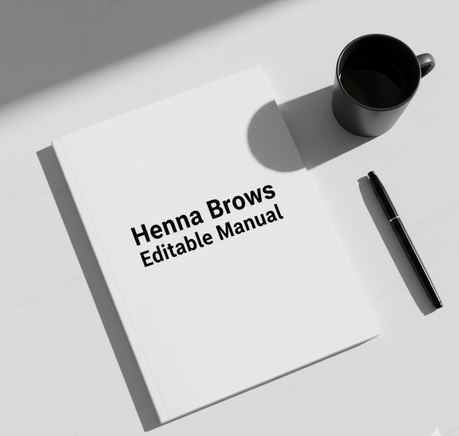 Our Henna Brows Editable Training Manual is a pre-approved, accredited guide designed to provide in-depth training on the art of henna brow application. This fully customisable manual is perfect for trainers, beauty professionals, and educators who want to offer high-quality brow courses.